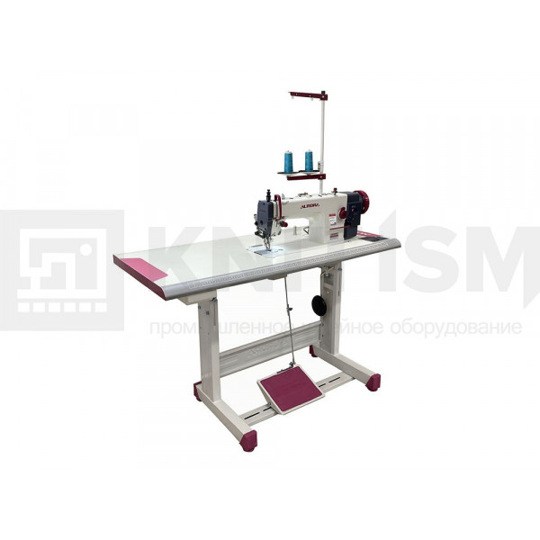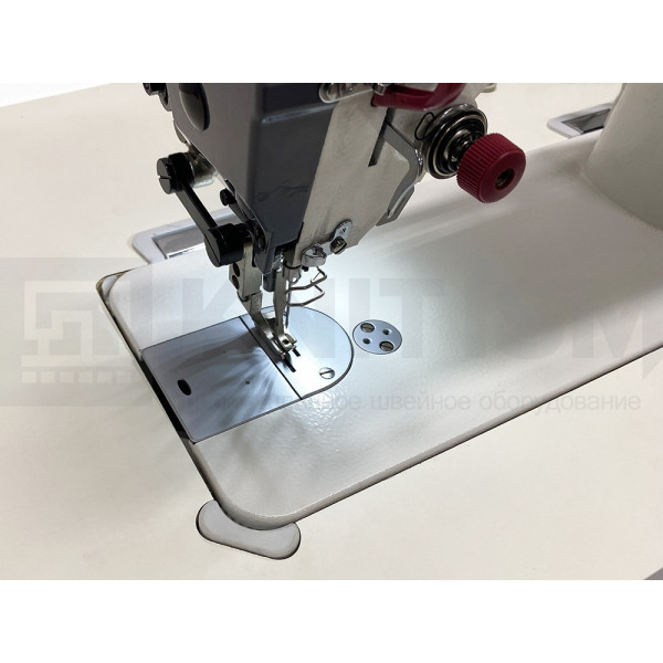 Прямострочная машина с прямым приводом, верхней и нижней подачей материала (шагающая лапка) и увеличенным челноком.