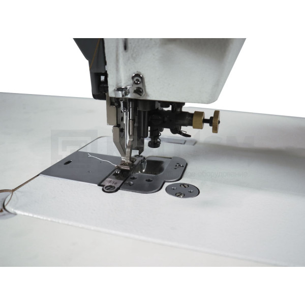 Одноигольная прямострочная машина с верхней и нижней подачей материала, ножом обрезки края материала и увеличенным челноком. Машина предназначена для эффективной обработки труднотранспортируемых материалов при производстве тентов, чехлов, диванов, автомобильных сидений, сумок, перчаток, брезентовых изделий и т.д.