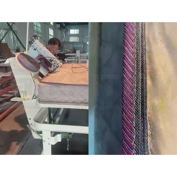 Машина для окантовки края матраса на базе одноигольной рукавной швейной машины челночного стежка Typical GC6-7 с устройством для окантовки. Предназначена для окантовки края матраса, спальных мешков, палаток и т.п. Изменение высоты стола осуществляется механическим способом. Управление шьющей головой и регулирование скорости перемещения шьющей головы вокруг стола, в том числе при угловом замедлении, осуществляется в ручном режиме.