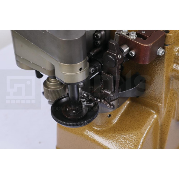 Машина предназначена для сшивания рукавов и выполнения боковых швов трикотажных изделий и свитеров. Продвижение материала осуществляется синхронным вращением зубчатого диска и роликов.