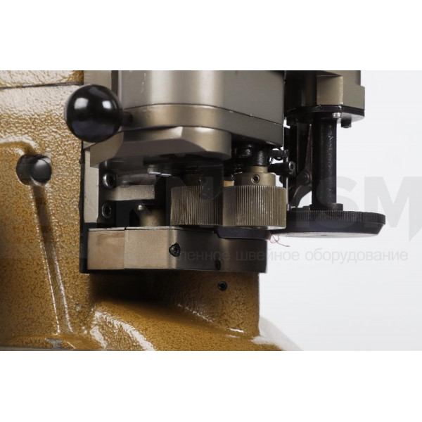 Идеальный вид изделия достигается за счет выравнивания деталей роликами, расположенными в зоне стачивания, а двойная тамбурная строчка может быть отрегулирована от 1 до 5 мм во время работы машины.