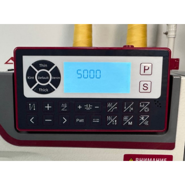 Настольная одноигольная прямострочная машина для средних и тяжелых материалов с автоматической обрезкой нити, закрепкой нити и автоматическим подъемом лапки, позиционером иглы и возможностью программирования количества стежков в строчке. C соленоидом зажима верхней нити для чистого начала строчки, электронная регулировка длины стежка. Возможность выполнения декоративных (дизайнерских) строчек, в память машины заложено 9 видов дизайнерских строчек. Имеет голосовое сопровождение на русском языке.