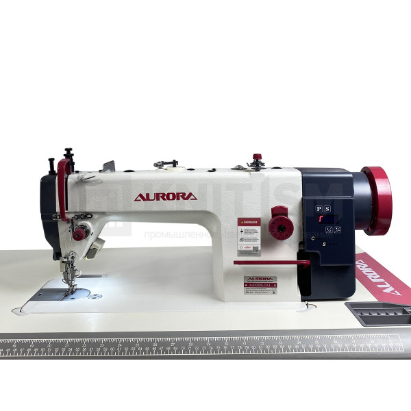 Машина челночного стежка с прямым приводом, шагающей лапкой и увеличенным челноком для шитья тяжелых материалов толстой нитью.