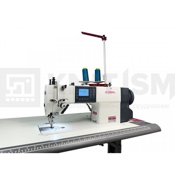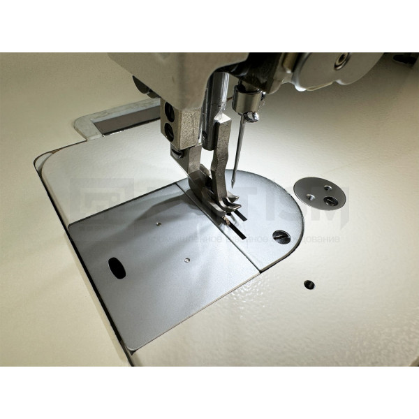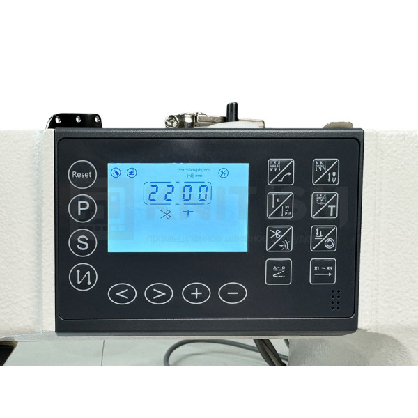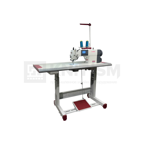 Одноигольная прямострочная машина с двойной подачей материала (шагающая лапка), электронной регулировкой длины стежка, прямым приводом, увеличенным челноком и автоматической системой смазки. Оснащена автоматической обрезкой и закрепкой нити, автоматическим подъемом лапки за счет шагового двигателя, соленоидом зажима верхней нити и функциями программирования количества стежков, электронная регулировка длины стежка.