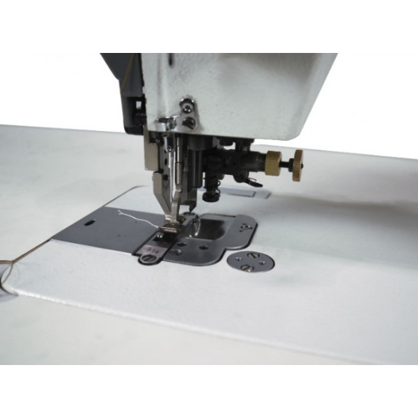 Одноигольная прямострочная машина с верхней и нижней подачей материала, ножом обрезки края материала и увеличенным челноком. Машина предназначена для эффективной обработки труднотранспортируемых материалов при производстве тентов, чехлов, диванов, автомобильных сидений, сумок, перчаток, брезентовых изделий и т.д.
