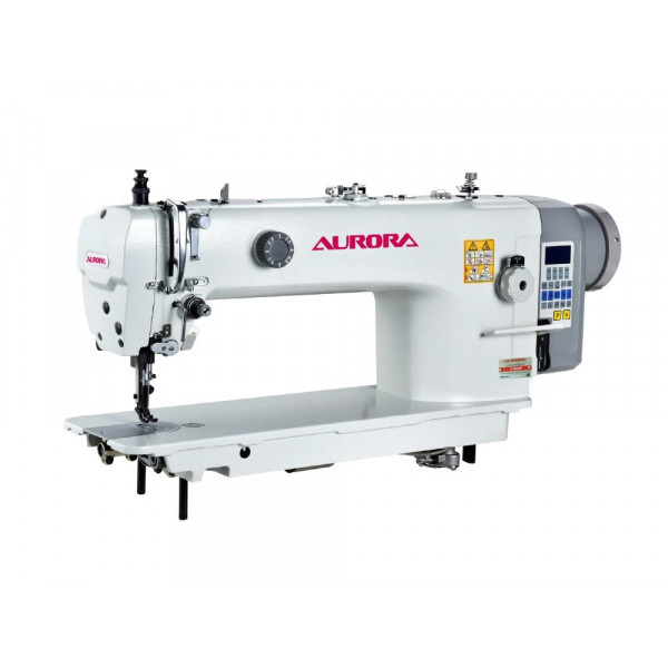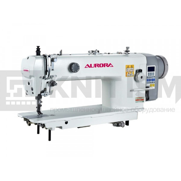 Одноигольная прямострочная машина челночного стежка с тройным продвижением, регулировкой высоты шагающей лапки, увеличенным вылетом рукава, автоматической обрезкой и закрепкой нити, автоматическим подъемом лапки, соленоидом зажима верхней нити и увеличенным челноком.