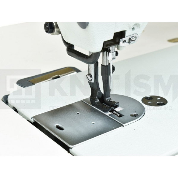 Одноигольная прямострочная машина двухниточного челночного стежка с тройным (унисонным) продвижением, серводвигателем встроенным в головку, увеличенным челноком и светодиодной подсветкой. Предназначена для пошива тяжелых и многослойных материалов при изготовлении тентов, мебельных и автомобильных чехлов, сумок и дубленок.