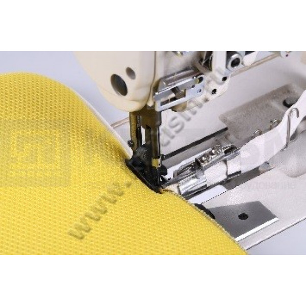 Одноигольная окантовочная машина с унисонным продвижением для тяжелых материалов и кожи. Применяется для окантовки одеял, матрасов, автомобильных ковриков, палаток и других изделий.
