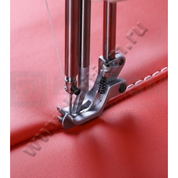 С помощью кнопки можно быстро изменить натяжение верхней нити или установить два режима натяжения. Механизм тройного продвижения обеспечивает плавность подачи при шитье тяжелых и сложных материалов, предотвращает их смещение и снижает расход материала. Встроенная подсветка области шитья. Комплектуется увеличенным вертикальным челноком для шитья толстыми нейлоновыми нитями кручением до 9 прядей Встроенный серводвигатель и пневматические элементы управления просты в обслуживании и энергосберегающие. Регулирование переменного давления на внутреннюю и внешнюю прижимные лапки может осуществляться одновременно с помощью кнопки на головке машины и контроллера на коленоподъемном рычаге. Регулировка высоты подъема внутренней и внешней прижимных лапок производится вручную для перешагивания через утолщения и достижения оптимальных настроек продвижения для определенных материалов.