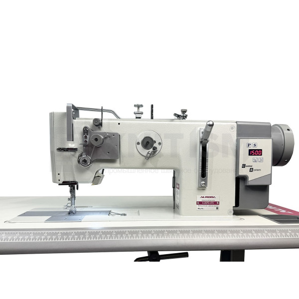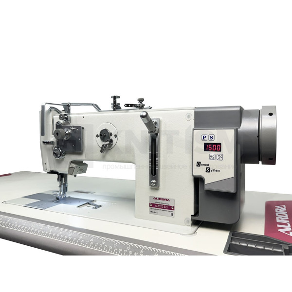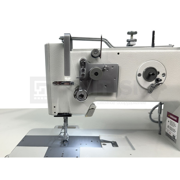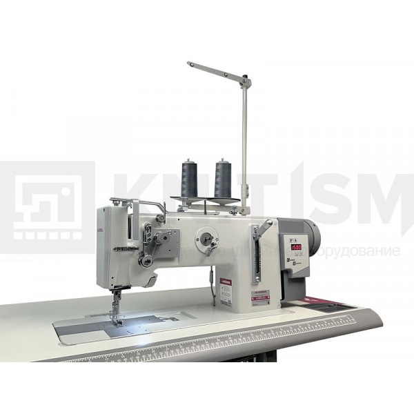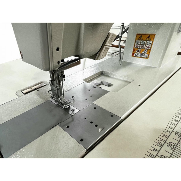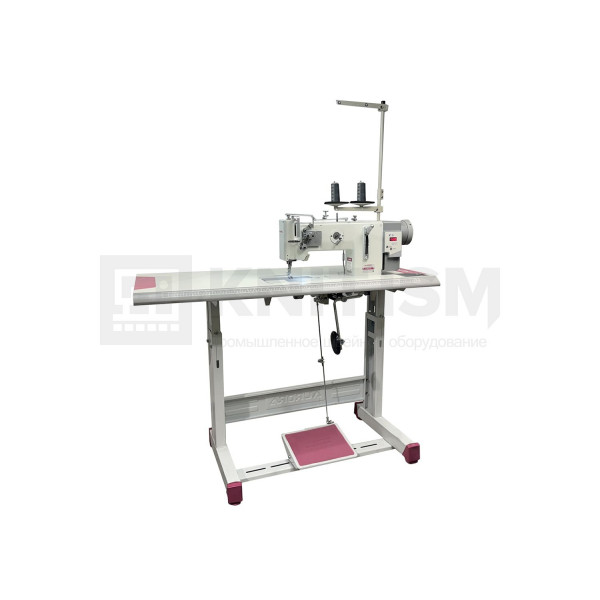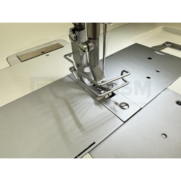 Одноигольная машина челночного стежка с тройным продвижением и прямым приводом, увеличенным челноком для обработки тяжелых материалов при пошиве мягкой мебели, кожи и технического текстиля.