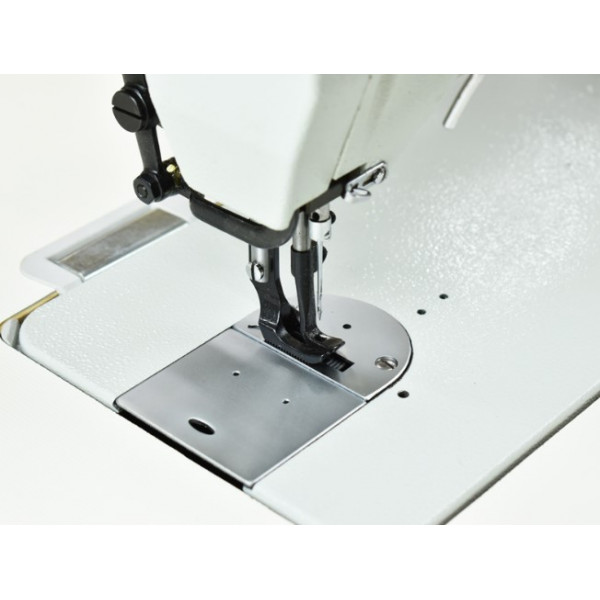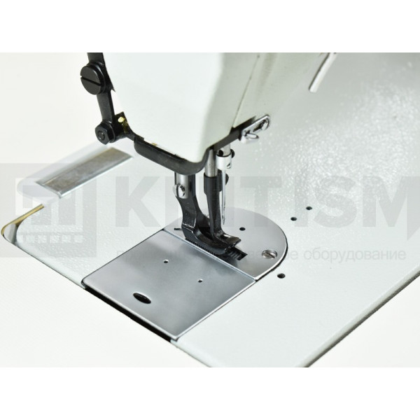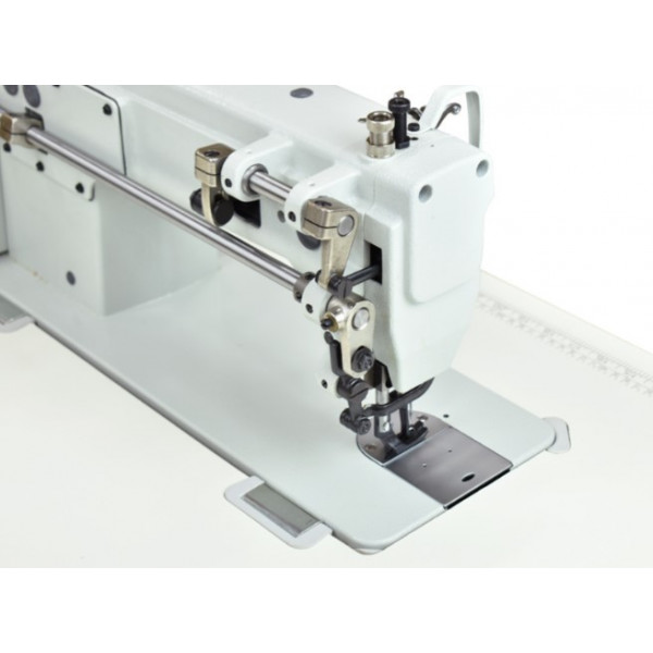Автоматическая смазка. В машине использовано челночное устройство с увеличенным объемом шпули, что позволяет сократить число перезаправок ниток в челноке. Надежную подачу обеспечивают два двигателя материала, работающих синхронно - нижняя зубчатая рейка и шагающая лапка. Игла за все время подачи не выходит из материала, причем ее горизонтальная скорость равна скорости подачи материала на всей длине стежка, что и обеспечивает выполнение шва высокого качества без посадки слоев друг относительно друга.
