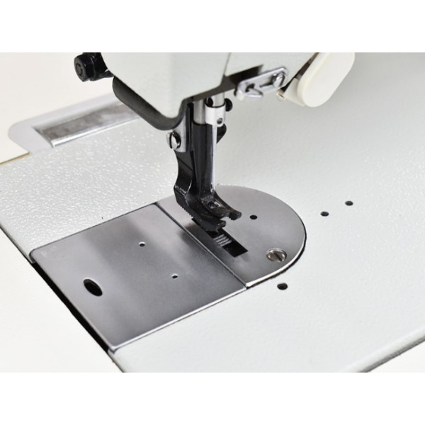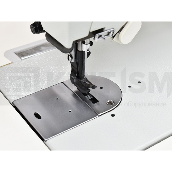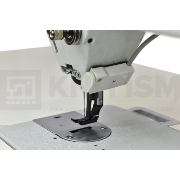 Автоматическая смазка. В машине использовано челночное устройство с увеличенным объемом шпули, что позволяет сократить число перезаправок ниток в челноке. Надежную подачу обеспечивают два двигателя материала, работающих синхронно - нижняя зубчатая рейка и шагающая лапка. Игла за все время подачи не выходит из материала, причем ее горизонтальная скорость равна скорости подачи материала на всей длине стежка, что и обеспечивает выполнение шва высокого качества без посадки слоев друг относительно друга.
