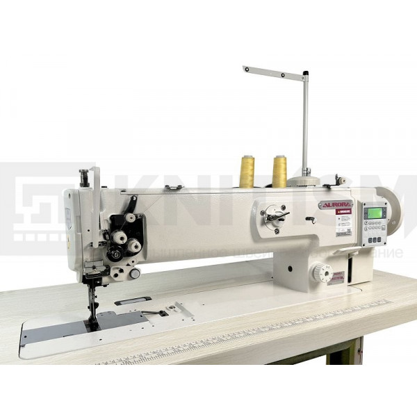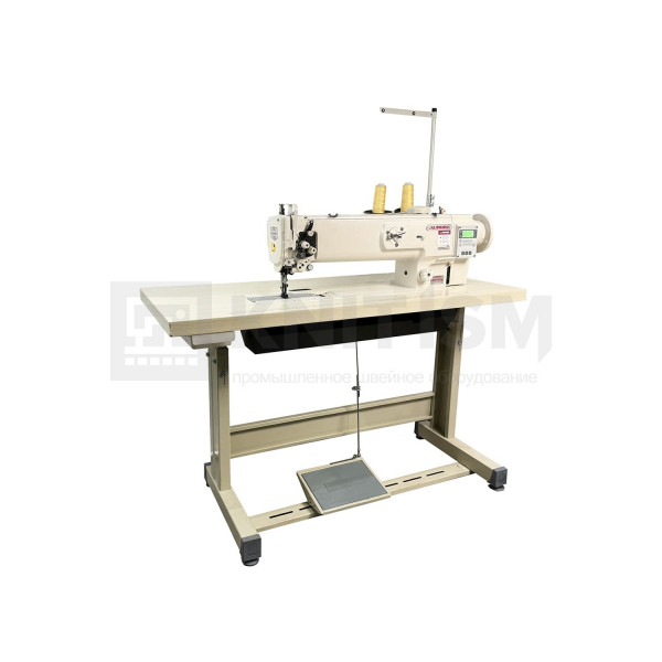Одноигольная машина двухниточного челночного стежка с унисонным продвижением, увеличенным рабочим пространством 355*105 мм и прямым приводом. Машина предназначена для беспосадочного шитья изделий из тяжелых и сверхтяжелых материалов, нетвердой кожи, например, мебельных и автомобильных чехлов, тентов, сумок, дубленок и т. д.