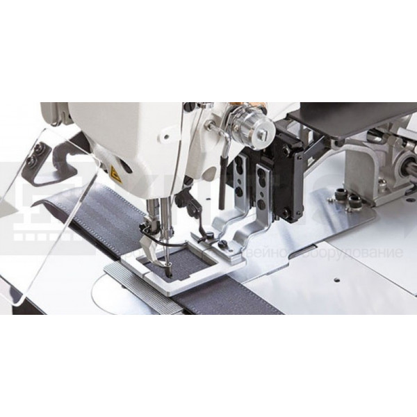 Швейная машина обладает достаточной гибкостью для обработки мелких изделий: ярлыки и эмблемы. Малая рабочая зона швейной машины облегчает работу при пошиве мелких изделий, обеспечивая таким образом возможность беспрепятственного выполнения операций Машина оснащена рычагом нитепритягивателя скользящего типа для повышения качества шитья с натяжением толстой нити. Увеличенный вдвое качающийся челнок УПАКОВКИ: