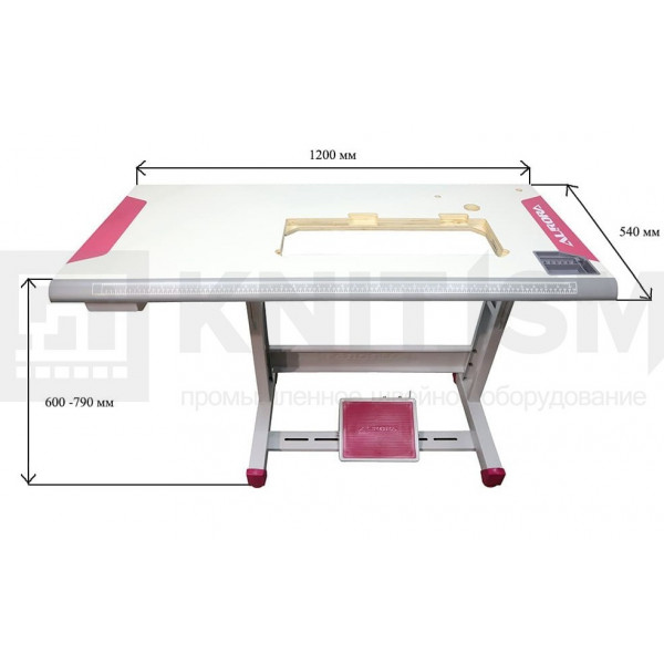 Столешница (скошенный перед) Цвет столешницы: белый, поверхность - гладкая Окантовка стола: пластик, цвет - красный + серый Размер столешницы: 120x54 см Толщина столешницы: 35 мм Высота стола: 600-790 мм Ноги: прямые Толщина металла ног: 1,5 мм Цвет окраски ног: белый Цвет резиновых заглушек ног: красный Педаль: одна большая с резиновым ковриком Комплектация и дополнительные опции:
