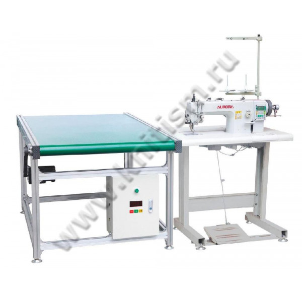 Отдельностоящий ленточный стол для подачи крупных заготовок изделий. Стол приводится в движение шаговым двигателем и имеет собственный независимый контроллер. Идеально синхронизируется с системой подачи материала швейной машины: сервоприводом, пуллером, включая функцию обратного хода. Предназначен для использования на одногольных и двухигольных швейных машинах, оверлоках и плоскошовных машинах.