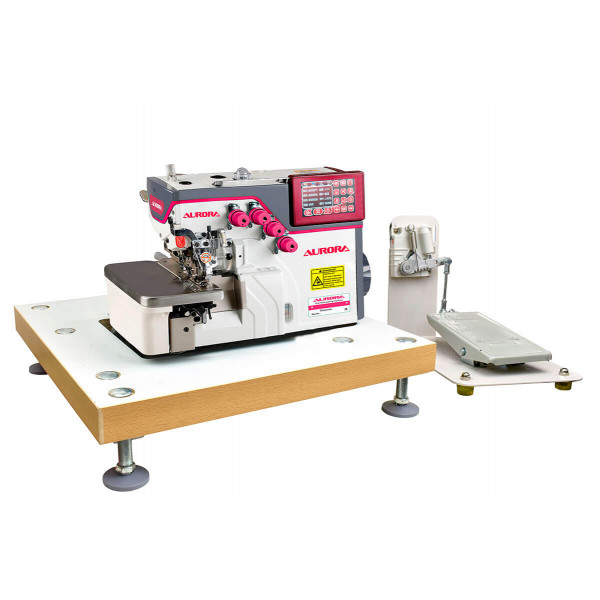 Настольный автоматизированный промышленный четырехниточный оверлок для обметывания краев трикотажных изделий с прямым серво мотором, автоматической обрезкой нити, подъемом лапки, панелью управления и звуковым сопровождением на русском языке. Предназначен для обметывания цепным стежком краев деталей швейных изделий из легких и средних материалов. Применяется при пошиве футболок, поло, спортивной одежды, нижнего белья, мужских рубашек и блузок, брюк, детской одежды.