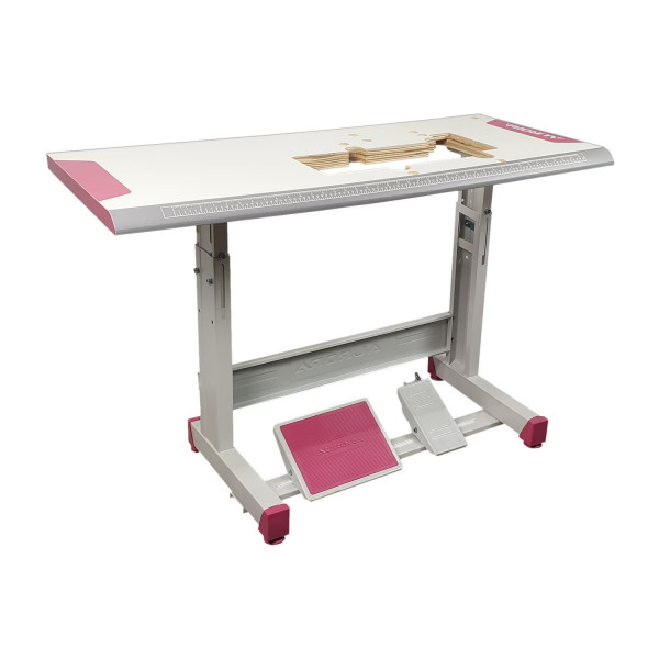 Столешница (скошенный перед) Цвет столешницы: белый, поверхность - гладкая Окантовка стола: пластик, цвет - красный + серый Размер столешницы: 120x54 см Толщина столешницы: 35 мм Высота стола: 600-790 мм Ноги: прямые Толщина металла ног: 1,5 мм Цвет окраски ног: белый Цвет резиновых заглушек ног: красный Педаль: одна большая с резиновым ковриком + малая металлическая Комплектация и дополнительные опции: