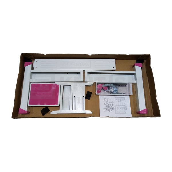 Столешница (скошенный перед) Цвет столешницы: белый, поверхность - гладкая Окантовка стола: пластик, цвет - красный + серый Размер столешницы: 120x54 см Толщина столешницы: 35 мм Высота стола: 600-790 мм Ноги: прямые Толщина металла ног: 1,5 мм Цвет окраски ног: белый Цвет резиновых заглушек ног: красный Педаль: одна большая с резиновым ковриком + малая металлическая Комплектация и дополнительные опции: