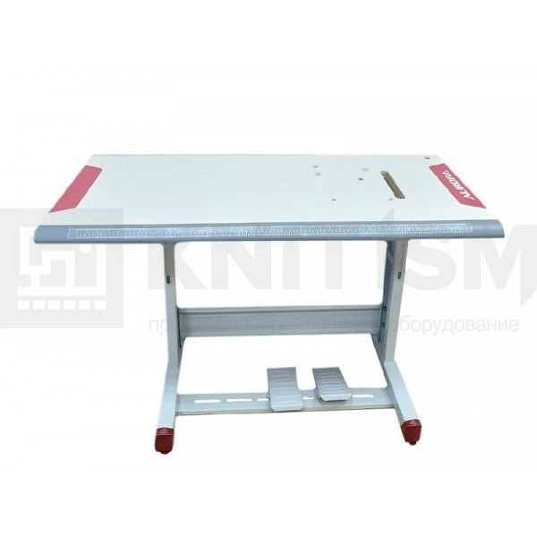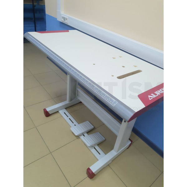 Столешница (скошенный перед) Цвет столешницы: белый, поверхность - гладкая Окантовка стола: пластик, цвет - красный + серый Размер столешницы: 120x54 см Толщина столешницы: 35 мм Высота стола: 600-790 мм Ноги: прямые Толщина металла ног: 1,5 мм Цвет окраски ног: белый Цвет резиновых заглушек ног: красный Педаль: одна большая с резиновым ковриком Комплектация и дополнительные опции: