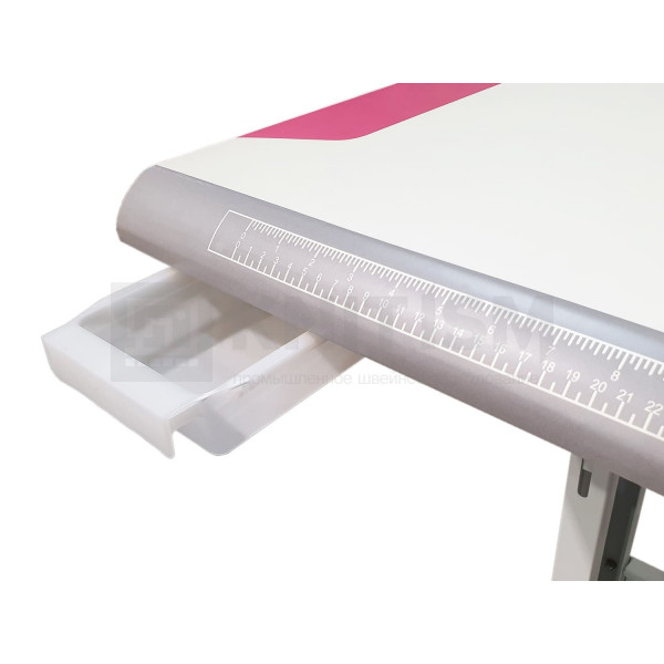 Органайзеры для хранения мелочей (выдвижной пластиковый ящик с направляющими) Разметка (линейка) на передней части стола в сантиметрах и дюймах Резиновые прокладки для амортизации машины Подходит к машинам: