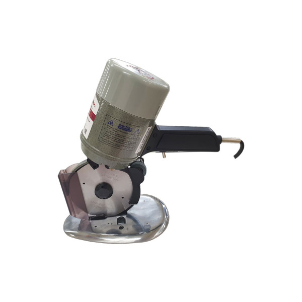 Дисковый раскройный нож с механизмом самозаточки имеет подошву с роликами для перемещения по поверхности стола.