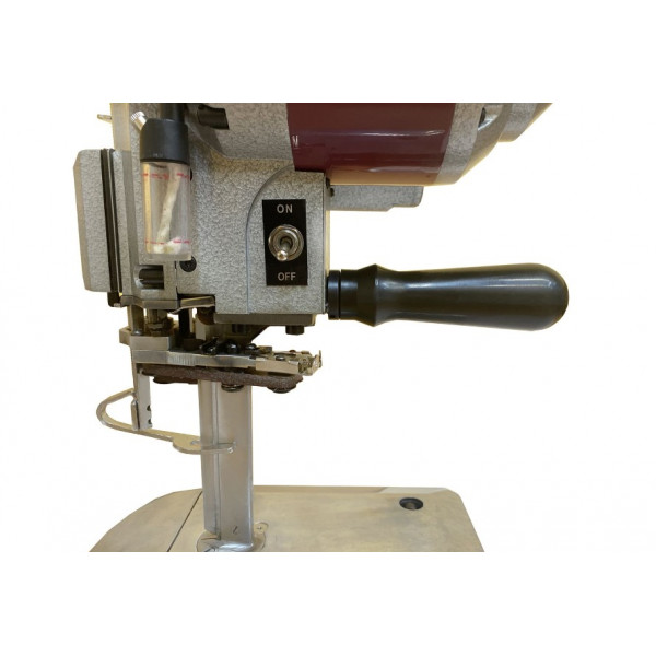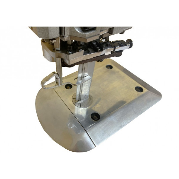 Передвижной вертикальный сабельный раскройный нож с узким лезвием, механизмом самозаточки и роликами в подошве легкого для перемещения по поверхности стола. Предназначен для раскроя настилов высотой не более 85 мм из легких и средних материалов. Благодаря узкому лезвию снижен угол поворота ножа.