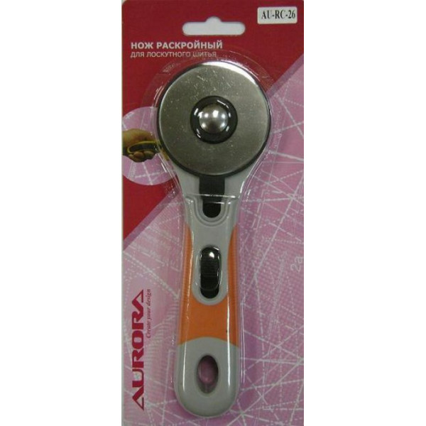 Нож специально разработан для разрезания нескольких слоев тканей и слоистых материалов. Лезвие диаметром 60 мм закрыто защитной пластиной из пластмассы, которая имеет больший размер, чем диаметр лезвия, и предотвращает случайное ранение при переноске и хранении ножа. Перед началом резания защитную пластину сдвигают вверх. Форма рукоятки удобна для работы как левой так и правой рукой. На рукоятке расположено два отверстия, одно служит для подвешивания ножа при хранении, другое для установки приспособления RTY-GUIDE при вырезании по шаблону. Круглое бритвенное лезвие используется для разрезания плотных ворсистых тканей на полоски, квадратики, фигуры различной формы, применяемые в художественной аппликации.