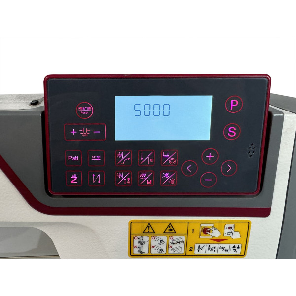 Одноигольная прямострочная швейная машина двухниточного челночного стежка со встроенным в головку сервоприводом, позиционером иглы, функцией плавный старт, функцией пошагового шитья и светодиодной подсветкой области шитья. Предназначена для шитья средних и тяжелых материалов. C соленоидом зажима верхней нити для чистого начала строчки, электронная регулировка длины стежка. Возможность выполнения декоративных (дизайнерских) строчек, в память машины заложено 9 видов дизайнерских строчек. Имеет голосовое сопровождение на русском языке.