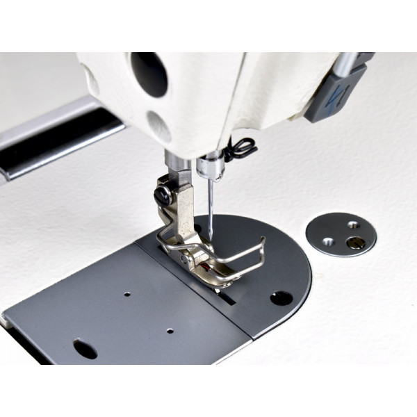 Одноигольная прямострочная швейная машина челночного стежка со встроенным в головку сервоприводом, позиционером иглы, функцией плавный старт, функцией пошагового шитья, светодиодной подсветкой области шитья и увеличенным челноком. Предназначена для шитья средних и тяжелых материалов.