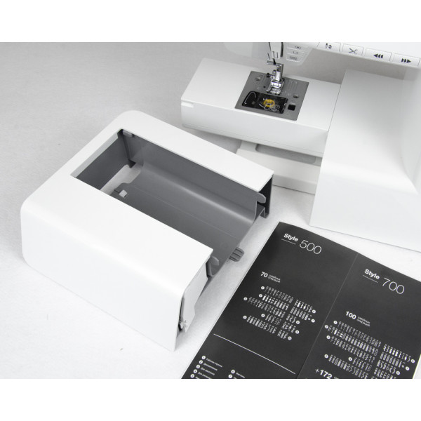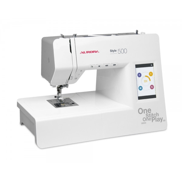 Aurora Style 500 - компьютеризированная швейная машина. Интуитивный интерфейс и большой цветной сенсорный дисплей (5") позволяет выбрать швейную операцию и изменить настройки шитья. 70 швейных операций включают в себя рабочие, декоративные, строчки для квилтинга, бордюры, имитации вышивки и многое другое.