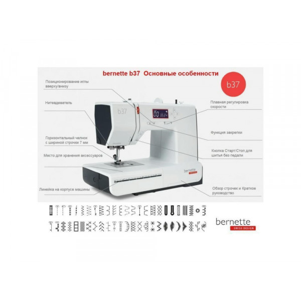 Швейная машина Bernette b37 – младшая в новой серии электронных машин от Bernina. Она предлагает широкий спектр полезных функций и высочайшее качество шва при шитье как легких, так и плотных тканей.