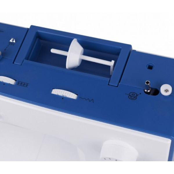 23 швейные операций, вертикальный качающийся челнок, автоматическая петля, плавная регулировка длины стежка до 4 мм, ширины строчки до 5 мм, встроенный нитевдеватель, LED-подсветка.