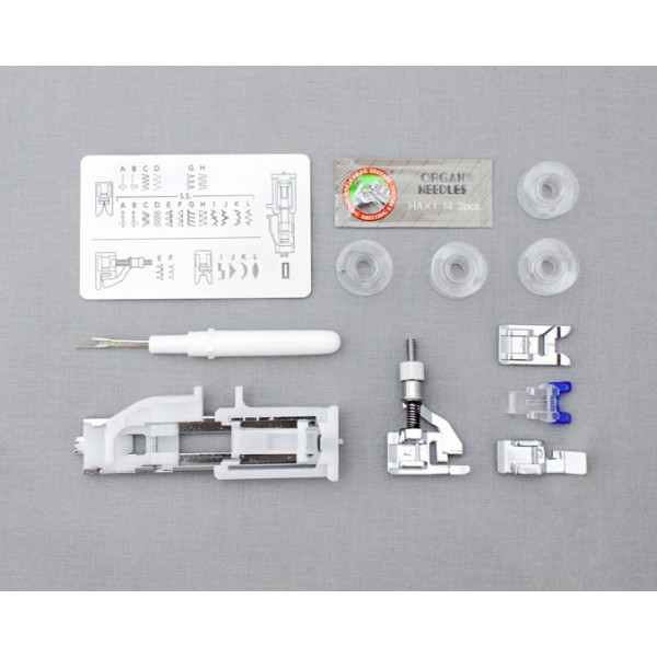 Машина способна выполнять наиболее распространенные строчки, такие как пряма и зигзаг, потайной и оверлочные швы, несколько декоративных строчек и петлю автомат по размеру пуговицы.