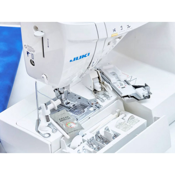 Двойная игла;Инструкция на русском языке;Иглы;Распарыватель;Чехол (жесткий);Шпульки;Щеточка для очистки;Катушкодержатель дополнительный;DVD