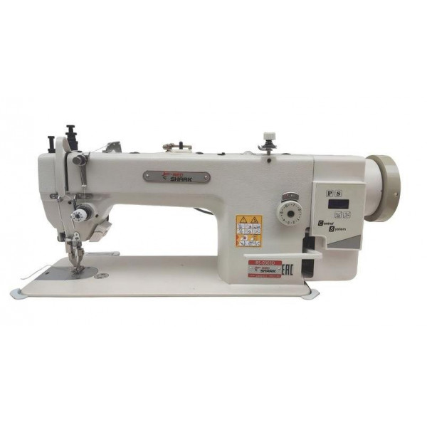 Одноигольная прямострочная машина челночного стежка с нижним и верхним («шагающая» лапка-перетоп) транспортером, плоской платформой, встроенным серводвигателем, увеличенным челноком Применение: Для пошива изделий из тяжелых материалов Преимущества: Длина стежка – до 12 мм «Шагающая» лапка-перетоп обеспечивает лучшее продвижение соединяемых материалов Увеличенный челнок способствует повышению производительности труда за счет сокращения перезаправок Энергоэффективный серводвигатель с прямым приводом и регулировкой скорости обеспечивает низкий уровень шума и вибрации при шитье Автоматическая смазка