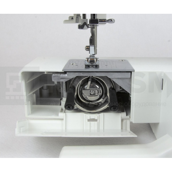 Машина работает с легкими и плотными тканями, 6-сегментная рейка позволяет уверенно продвигать материал. Сняв приставной столик с отсеком для хранения принадлежностей, Вы получите доступ к рукавной платформе для кругового шитья.