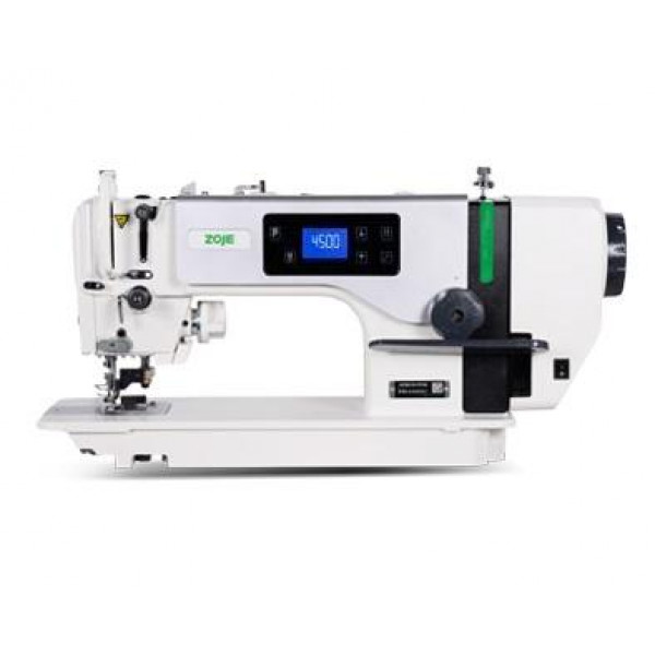 ZOJE A5300/02 Одноигольная промышленная швейная машина челночного стежка с нижним двигателем ткани . Машина оборудована механизмом краевого ножа.