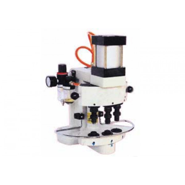 Пресс пневматический 1-головочный для установки металлической фурнитуры (кнопок, блочек, хольнитенов) на швейных и галантерейных изделиях Повышение производительности за счет установки 3-х разлиных насадок на 1 голове. Прост в управлении