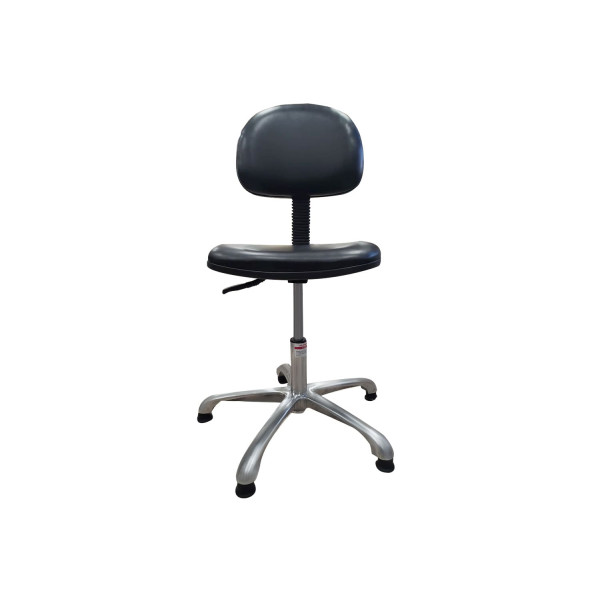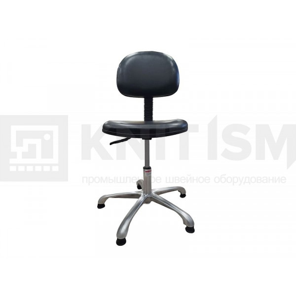 Швейный (лабораторный) стул на газ-лифте с покрытием из кожзаменителя повышенной прочности, на крестовине из алюминиевого сплава и пяти неподвижных опорах (стопках). Стул предназначен для использования на крупных швейных предприятиях, дома, в ателье, медицинских учреждениях и лабораториях.